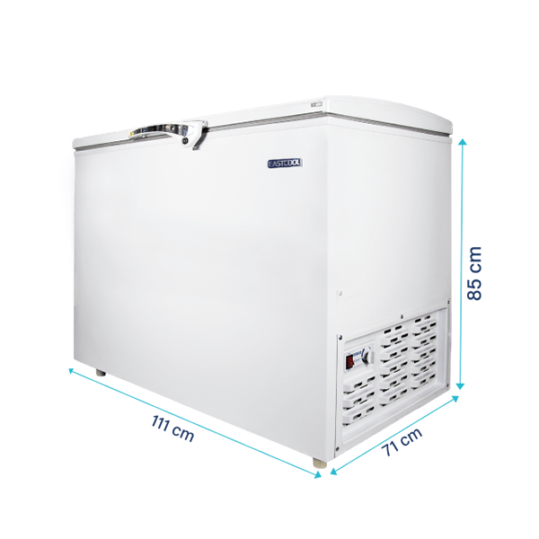 فریزر صندوقی ایستکول سفید با طراحی ساده و مقاوم، انتخابی عالی برای منزل، مغازه یا اداره است.