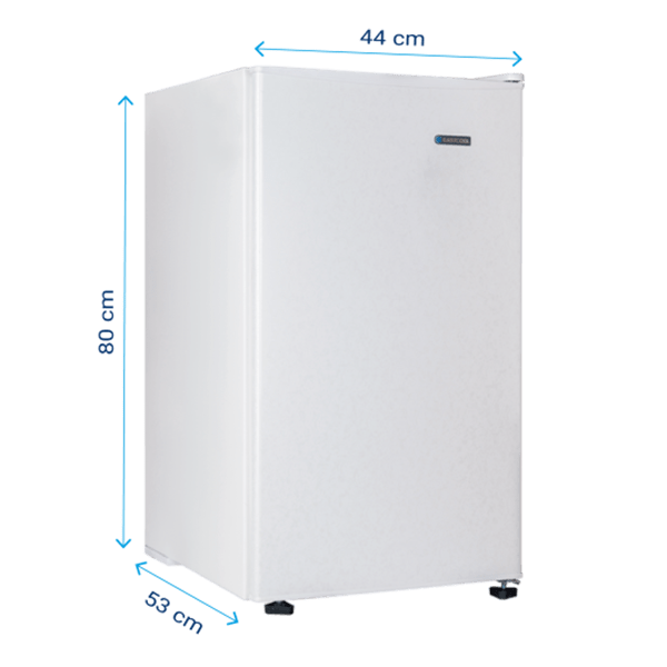 ابعاد ۴۴×۵۳×۸۰ سانتیمتر و وزن ۲۰.۶ کیلوگرم حملونقل و نصب را آسان کرده است. پایههای قابل تنظیم نیز امکان قرارگیری یخچال روی سطوح شیبدار یا مرطوب را فراهم میکنند.