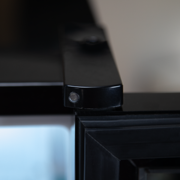 درب شیشهای شفاف با فریم مشکی یا سفید، دید کامل از داخل یخچال ارائه میدهد و نمایش محصولات را جذابتر میکند.